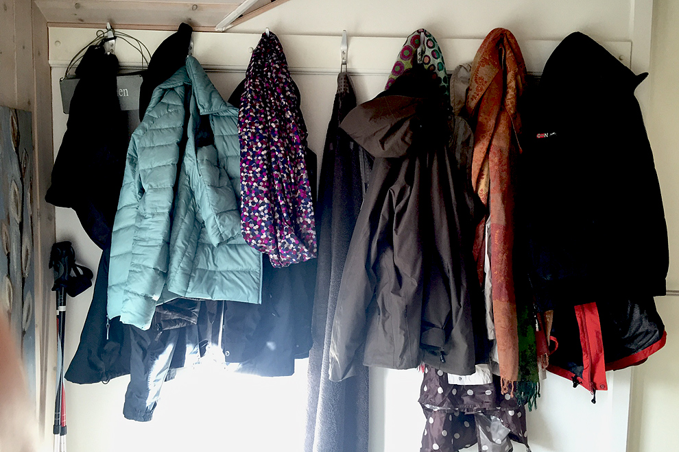 Und wenn wir uns mal so umschauen … wir sind nur zu dritt und die Garderobe hängt voll … – aber so ist man wenigstens für jedes Wetter gerüstet!